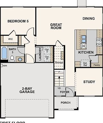 The Dahlia plan welcomes you with a charming covered porch. Just inside, you'll find a private study off the foyer. Continue down the hall and the home opens up with a well-appointed kitchen-boasting a center island and corner pantry-that overlooks an expansive combined dining and great room area. A convenient secondary bedroom with a walk-in closet, full bath, laundry room and two-bay garage complete the main floor. Upstairs, you'll enjoy three secondary bedrooms-two with walk-in closets-that share a full hall bath, and a generous primary bedroom with a walk-in closet and en-suite bath.