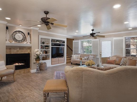 Tucked away at the end of the cul de sac is this beautiful 4 bed 2.75 bath home with pebble pool. The lower floor offers 3 beds, private office, large living area with fireplace, recessed lighting, ceiling fans, plantation shutters, built in cabinet, tile flooring, and crown molding. The kitchen is complete with large windows, alder wood cabinets, tile floor, granite counter tops, tile back splash, gas cook stove, large hood exhaust, built in fridge and microwave. Master bedroom has a large master walk-closet, huge bath with dual sinks, make up area, tile shower, and built in cabinet. Guest bath features soaking tub, updated vanity, and tile. Upstairs you'll find a large game room fully equipped with built in cabinets, mini fridge, granite counter with sink, balcony, plantation shutters, and additional bedroom and bath with shower. Stop by and see for yourself. With all these amenities, you're sure to fall in love.