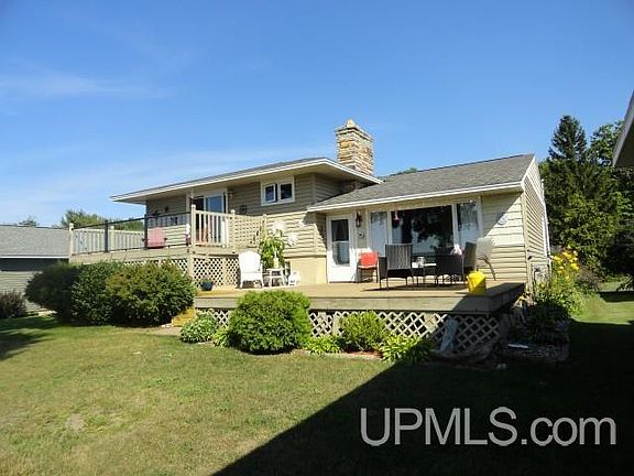 LAKE SUPERIOR'S MUNISING BAY is the setting for this immaculate 3 bedroom 1.5 bath custom built split level home. Located just down the street from the hospital, Munising Falls and Pictured Rocks National Lakeshore Park. Home features include finished family room with fireplace and 1/2 bath in basement level; 2 car garage with workshop on street level; main level has a beautiful kitchen - an island with built in range and see through to living room plus view of the lake - spacious living room with fireplace and outside access to 18x18 deck; upper level features spacious bedrooms with glass sliding doors leading to separate 11x18 deck off master bedroom, and two more bedrooms and full bath. Landing and hallway on second level features washer/dryer facilities inside huge closet. Views from this lovely home are spectacular - especially the sunsets - never two days alike. The stairway to the shoreline and dock has some vegetation growing on each side and along the beach that could be trimmed away for more useable area. Don't wait on this one - you could be living your dream in this very affordable home.