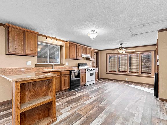 1973 Schultz single-wide trailer with large living room addition + framed bonus space (18x15!) all ready for you to use as workshop/storage or complete the build on and make a large primary bedroom! This home has many fantastic updates including new flooring and freshened-up exterior paint and brand new concrete walkway. The kitchen is spacious with two options for dining room plus a breakfast bar. Your property is nearly a third of an acre of land with a detached 2 car garage, storage shed and a nice covered front porch (12x8) with built in bench. Home will require in-house financing or cash for purchase.