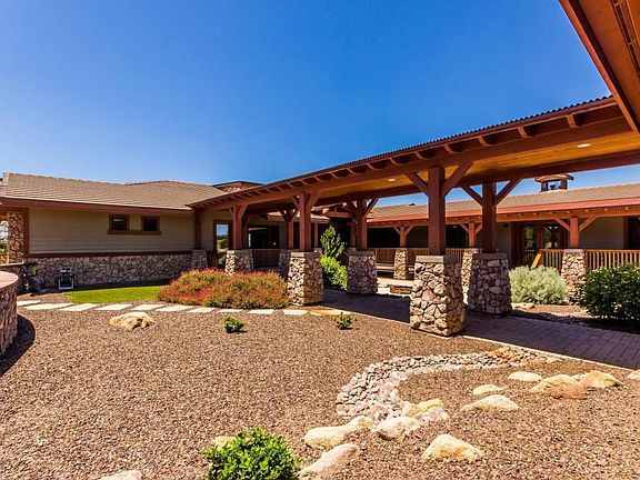 LIVE on a golf course in the cool mountain air of Prescott AZ., with close to 300 days of sun! You will love our temperate climate. This unique custom home design can be your next living adventure, designed around outdoor living spaces.As you walk up to the entry gate, you see a private courtyard for entertaining or containing your 4 legged companions. To your left, a covered walkway from the garage, leads you into the custom kitchen. Walk straight ahead from the entry gate to the beautiful main house entrance or to your right is the entrance to the separate Casita. A covered deck surrounds the courtyard and flagstone patio with fire pit. The main living space is 3589 SF, the casita is 1016 SF, and the 3 car garage is 1305 SF. The total living spaces give you 4 BR/5 BA plus two flex rooms.
