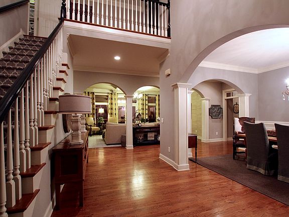 - Interior: 10 ft+ Ceil Main, 2-Story Foyer, Entrance Foyer, Trey Ceilings, Bookcases, Disp Attic Stairs, His & Her Closets, Exposed Beams, Rear Stairs