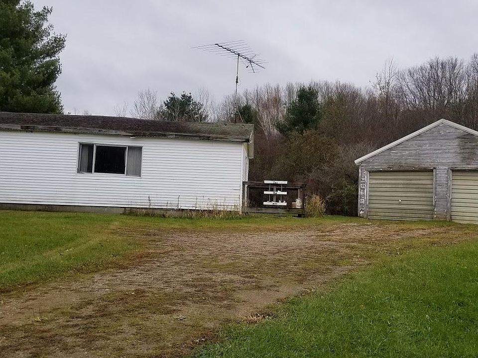 10 wooded acres, 2 car garage and an old home with no value added. Located just a few miles outside of Big Rapids on a paved road.