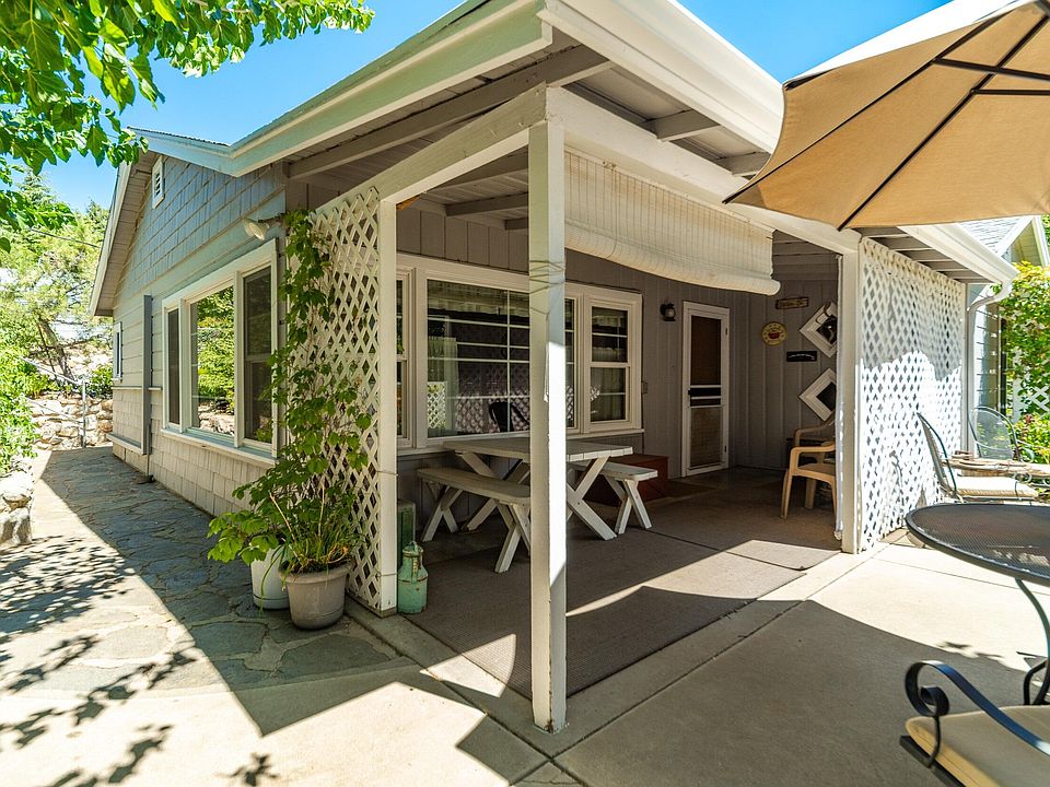 Adorable Country Cottage in Lake Elizabeth. This 2 bedroom, 1 bath cottage is located on a corner lot with 2 additional parcels totaling almost 1/2 acre along a detached 1 car garage with a 1 bed, 1 bath guest room. Surrounded by lush trees and shrubs is the covered front patio and inviting front entry. Greeting you home is the open living room and dining area with wonderful knotty pine tongue and groove open beam ceilings, woodstove for those chilly nights and wonderful views out the many windows to your own forest of trees. The cozy kitchen has tile countertops, rustic cabinets and is adjacent to the laundry/utility room/pantry with tons of space, open shelving, storage and access to the back patio and large yard. The 2 main bedrooms both have knotty pine wainscotting and paneled doors, the main bathroom has been remodeled with a nice deep tub/shower combo and tiled floors. The detached guest room is spacious with a 3/4 bathroom. The property is fully fenced with a double gated entry at the garage, walk through gate near the front of the house and 2 additional double gates perfect for vehicle access and even the RV and other toys. The grounds are ready for whatever you can dream of. There's space for a garden, play area, additional patio areas under the trees. There's even a storage shed out back for housing either tools, toys, outdoor games and maybe some patio furniture. This property offers so much, you'll just have to see it for yourself.