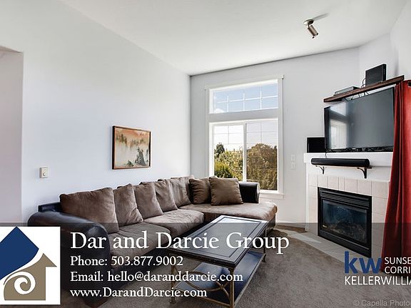 Must see end unit condo in desirable Murrayhill location! Open and bright with high ceilings throughout living room, dining area and master suite. Living room features corner gas fireplace and slider to balcony overlooking trees. Open kitchen with eating bar and adjacent dining area. Spacious master suite includes walk in closet, double vanity and soak tub. Close to shopping and restaurants!