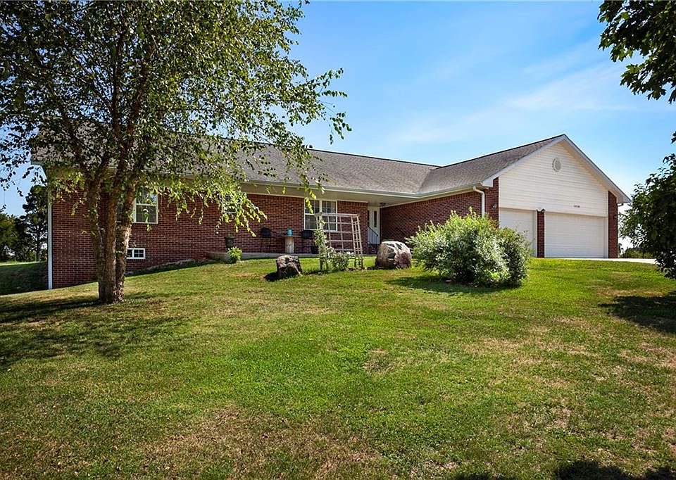 Looking for your own piece of the country? 2,521 sf home on 2.14 beautiful acres has a fantastic 40x60 insulated shop! All brick w/ granite counters, hardwood floors, large open living spaces, 3 beds, 3 full baths, formal dining plus breakfast area, built-ins, great storage, pull out drawers in all kitchen cabinets, wood fireplace, large laundry room. Unfinished basement, whole home backup generator. Master features double closets, double sinks, whirlpool tub & separate shower. Well maintained! Must see!