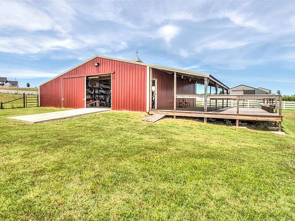 Private Lake...Check! Spectacular view... Check! 5.5+ acres with close access to Hwy 75. Large 5 year old barn with 8 inch concrete floor and electric. One story home with built-ins in the secondary bedrooms, master bedroom large enough for sitting area, two closets and built in shoe racks. Deck has been added to the barn to enjoy the lake views. Walking trail has been cleared around property.