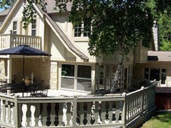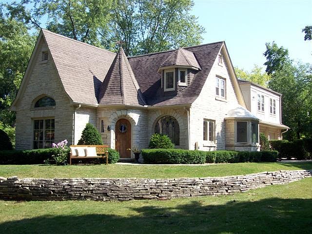 BRAND NEW ROOF! Built in 1935, this impeccably maintained stone Elm Grove Tudor nominated for State Historical Registry, featured in Mke Journal Interiors section abounds in gorgeous architectural details and one of a kind amenities. 3/4 BR, one with Juliet balcony overlooking vaulted LR, 3.5 BA. LR w/stone fireplace, wood beams, hand-carved banister & details, FR with handcrafted oak ceiling & paneling, DR w/ tray ceiling, hand-painted arched leaded glass window, a 3 season room, sunroom, 1st & 2nd story deck, stone fire pit, hot tub. MB suite w/office/sitting room. Huge yard, mature trees. Updated KIT boasts all SS appliances, granite counters, custom cabinets.