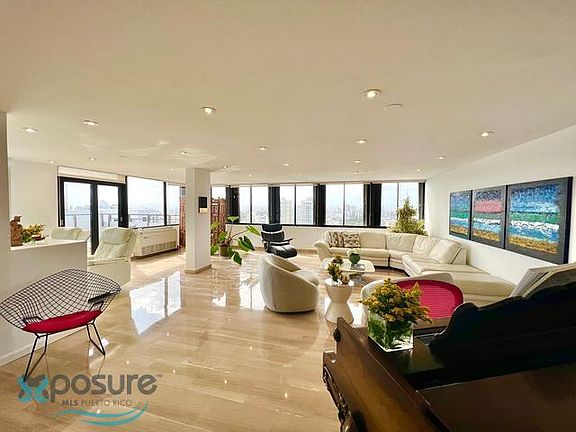 Nicole Franceschini Real Estate proudly presents this unique duplex Penthouse in one of the most sought after areas in San Juan. Condado Beach is arguably the jewel of Puerto Rico and its Chic metropolitan lifestyle goes hand in hand with this duplex PH. Just 10 minutes from the San Juan airport lies this enclave of sophistication complete with beaches, shopping, restaurants, art galleries and top notch private schools. Built to entertain, this oceanfront property boasts epic views of the Atlantic beach coastline east and west but even more is its majestic sunsets, mountain topography and the nighttime twinkle of city lights. Inside this beautiful home on the first floor( 22nd floor), you will find 4 bedrooms, and 3 full bathrooms complemented by the exquisite marble floors throughout the property. The second floor( 23rd floor) provides beautiful entertaining areas with a family room, formal living, chef's kitchen with granite tops and island, dining room, 1 full bathroom, 1 half bathroom and outdoor areas. The wrap-around terrace offers balmy breezes, marble enclosed jacuzzi, outdoor shower, and a greenhouse to while away the day or night. Additional Inclusions: 2 underground side by side parking spaces, some furniture, storm shutters, storage space with full bath, zone controlled aircon, Goal Zero Yeti 3000 battery backup power system, 6 solar panels, community pool, gym, tennis courts, generator for common areas, and water cistern. Airbnb Allowed. HOA: $954 monthly CRIM: $4,495 annually Insurance: $3,913 annually..