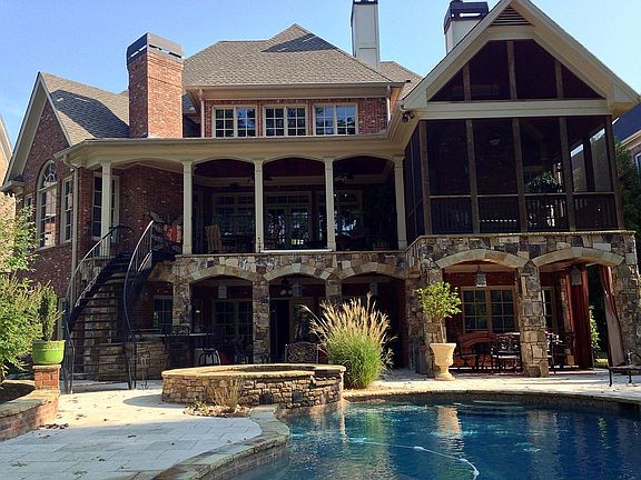 Luxurious custom lake & golf course home available. Must see to appreciate this stunning home and the beautiful lakeviews throughout. This stunning home was designed and built for entertainment while also serving as a quiet 'stay-cation' retreat. 7 bdrm, 6 full/3 half baths residence. Numerous amenities in swim/tennis country club community. Terrace level:-Full bar with wine storage, seating, etc-Billiards room-Theater room with 14 person seating -Den complete w/pub table-Indoor gym complete w/dry sauna, 1/2 bath, add'l laundry-2bdrm SuiteMain:- Large Veranda overlooking pool/lake- Master suite complete w/ 2 pers shwr/steam rm, morning bar, private lakeview screen porch- Gourmet kitchenExterior:- Pool with hot tub- Outdoor covered kitchen w/ gas grill and covered dining all poolside- Large lake-point lot for fishing, boating, gathering w/ friends around stone patio, firepit, & add'l grillEtc.Owner pays trash and community amenities (pool, tennis, etc).