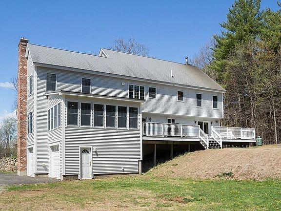 Tucked back on the fringe of the NH line lies this extraordinary Colonial crafted for entertaining & boasting 13 acres of commanding views. Built out over 3 finished levels along w/ an unfinished basement, this home presents a long list of comforts including but not limited to central air, Buderus boiler, generator hookup, trex deck and much more! An easy flowing LR, Formal DR, Gourmet Kitchen w/ granite counters, and grand Family Room leading to a window wrapped sunroom provides the focus of the house. Unforgettable details include a Farmers Porch, large back deck, 3 car garage, 1st floor study, separate laundry room, and a luxurious master bedroom w/ spa-like ensuite accented w/ a jacuzzi tub, his and her sinks and separate walk-in shower. Local forests/state parks and the pines campground provide wonderful leisure opportunities just minutes away. Don't miss your opportunity to own this gorgeous home!