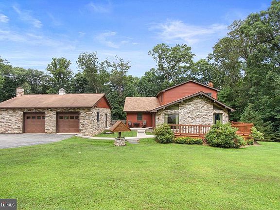 Looking for privacy AND convenience? Looking for a private oasis in the woods? Need a place to store your RV, ATV or cars? This contemporary 3BR, 3BA home situated on 1 acre, could be the gem you are looking for! One owner home has been updated inside and out, and features top-of-the-line upgrades, plus special features! The property provides parking for 10+ cars on the gravel parking area, plus features a detached 3+ car garage, with two overhead doors and flue for a wood stove. There is also another tandem integral garage (16x30) for other vehicles, or your toys! Both garages have hot and cold water, electric, and garage door openers. This home has been lovingly cared for and features a main floor primary bedroom suite addition in 2017, with outside entrance, just off the foyer. The primary bedroom features a vaulted ceiling with tongue and groove pine wood, recessed lighting, a true cedar walk-in closet, full bath with ceramic tile floors and ceramic tiled walk-in shower with dual shower heads. The laundry room is also located in the primary bedroom for convenience. Throughout the first floor you will find beautiful Hickory hardwood floors, and beautiful pine wood accent walls. The kitchen was remodeled in 2020 and opened up the flow to the living room, dining area and foyer. It features a gorgeous Weir Kitchen, with knotty alder cabinets featuring pull out drawers and spice rack, stainless steel Wi-Fi connected appliances, granite counters, farm sink, island with breakfast bar, convection oven with air fryer and precision cooking, propane gas 5-burner stove top with vent to exterior, and much more! The living room features vaulted ceilings with track & recessed lighting, a dining area, trophy wall with pine tongue and groove panels, and large windows overlooking the front yard and deck. Off the kitchen is a mud room with ceramic tile floors, office, and full bath. The upper-level features new carpet, two additional bedrooms and a spacious bath with tiled floors and large soaking tub! The lower level is unfinished with newer well tank, new water heater, flue for a wood/coal stove, access to the rear yard/integral oversized garage, great storage space, and even room for expansion. The owner used a coal stove as the main source of heat. The stove was vented properly to the exterior and connected to the main ductwork. 2 zone heat and central air was added after the addition was put on. Property is located south of Red Lion, not far from PA/MD Line. Rural, but not far from conveniences! AGENTS - please read agent remarks & associated docs.