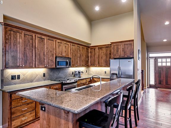 Great opportunity to live in the prestigious Northwoods Estates subdivsion. Beautiful Craftsman style with master suite and office on the main level. Great room floor plan with soaring vaulted ceilings and hand-scraped solid hardwood floors. Cozy gas fireplace with rock surround. Custom kitchen with Alder cabinets and slab granite countertops. Rv parking. City park close by. Patio plumbed with gas.