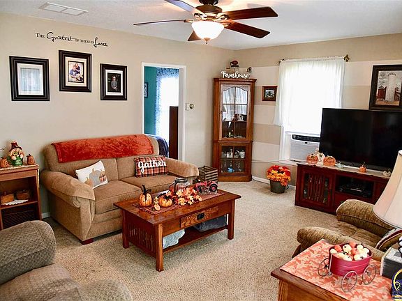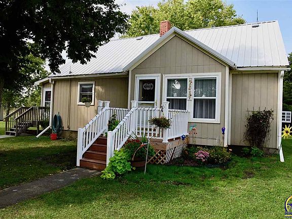 Located just southeast of Emporia, Kansas, this 40 acre property offers county living on blacktop w/ the most perfect farmhouse that has been fully remodeled, turning it to current farmhouse chic! This 3 bedroom 1 bathroom home provides 1,189 sq. ft. of finished living space. Outdoor wood burning furnace w/ additional propane furnace backup. Composite decking. Detached garage w/ additional storage shed/chicken coop. Lawn shed. 38 acres of pristine native Bluestem hay meadow w/ pond. "AS IS" condition.