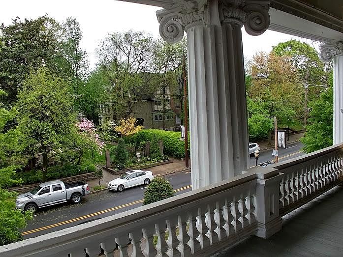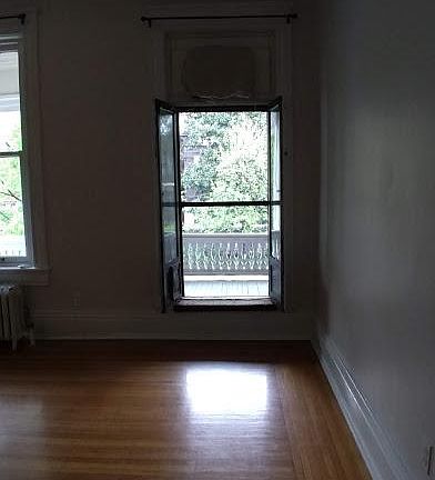 Quiet, stately Old Louisville historic neighborhood. Security doors in front. Sunny second floor apt with large windows and French doors to large balcony overlooking Belgravia Court. Large LR with built-in bookcases and pocket doors, large separate DR with built-in floor-to-ceiling closets, updated kitchen with all appliances and tons of storage. Tile bath with linen closet, queen size BRs with closets. Hardwood floors, tile in kitchen and bath. Walk to UofL, downtown, Central Park, busline at corner. Cozy, warm radiant heat, window AC. Laundry and storage unit in bsmt, 1 garage space. Communal patio/garden area in back. Tenant pays personal electric and internet. No smoking, waterbeds, aquariums or cats. Other pets negotiable. Application, references, deposit, lease required. provided upon request
