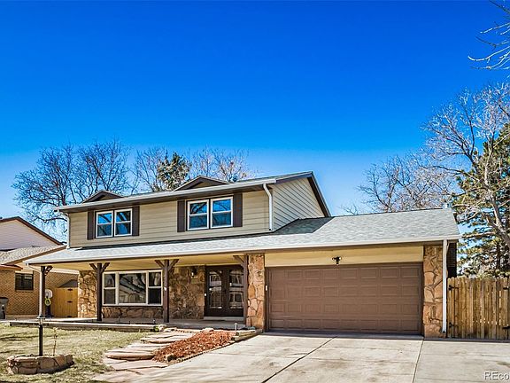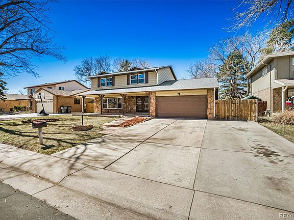 Look no further! Be the proud owner of this fabulous two-level property featuring beautiful stone accents and extended driveway in Aurora! Excellent location near restaurants, markets, parks and Cherry creek schools district. Prepare to be impressed by an inviting interior showcasing gleaming wood flooring, soft carpet and tile floors, large windows, and neutral palette throughout. You'll also find a formal dining area & charming family room offering vaulted ceilings with exposed beams, skylights, a cozy fireplace, and sliding glass doors opening to the back patio, merging the indoor with the outdoor living! The fully-equipped kitchen boasts plenty of cabinets, stylish mosaic backsplash, stainless steel appliances, and a peninsula with a breakfast bar. Continue into the spacious main bedroom featuring a private bathroom and 2 closets for added convenience, another 3 bedrooms and a full bathroom completed the upstairs. Don't forget about the finished basement & den with endless possibilities to become whatever your heart desires, as well and additional bedroom and a full bathroom. You'll love hosting fun gatherings in the wonderful backyard including a hot tub, covered patio and ample space for entertaining. Don't miss out, truly a MUST-SEE!