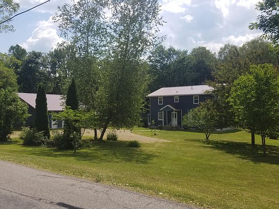 Find Peace on this private 2 acre plot of land containing various types of trees plant life and wildlife. Large 4 bedroom 1 and half bath home with large open eat in kitchen, first floor laundry and a partially finished basement for additional living space. Oversized 2 car garage with partial basement and walk up attic for tons of storage space. Cross the bridge to the cabin in the woods ready