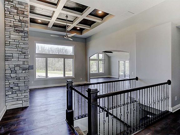 This home has it ALL!! This custom built ranch by J&K Contractors has 4 Bedrooms/3.5 Baths on a FULL, FINISHED basement! Situated on a quiet cul-de-sac lot, this home also includes beautiful landscaping AND five 20+ foot pine trees!! A few features of this home includes a custom curved quartz island w/seating, stone hood, wood beams in dining area, floor-to-ceiling stone fireplace that meets the wood planked coffered ceiling and oversized double barn doors that close off a multipurpose room! The master suite has a walk-in ceramic shower, soaking tub, and a 2-story master closet that opens up to the huge mud/laundry room! The basement is a must see with huge kids playroom w/slide and rock wall, full granite wet bar, theater room w/granite beverage bar and a bedroom and full bath! You can head out to your EZ Breeze porch for your year-round entertaining!