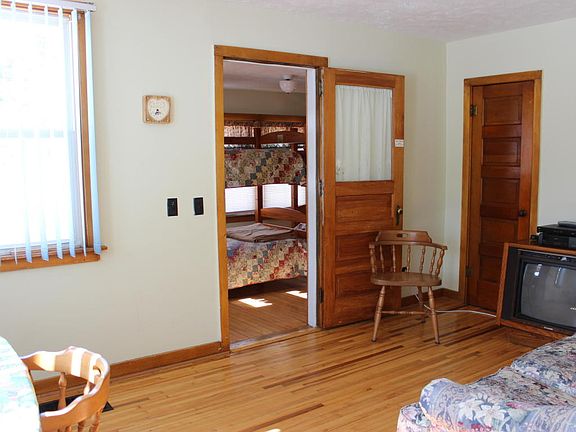 Rental cabin located on 3 partly wooded acres. Can be your year round home or vacation/rental cabin. Minutes away from snowmobile trails, fishing, Crystal Mt. hiking and biking trails Maintenance free exterior. Quaint inside, original wood floors. Front porch is currently used for extra sleeping space. Cabin has central air, newer septic, village water.Currently rents for $450 per week or $75 a night