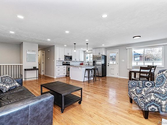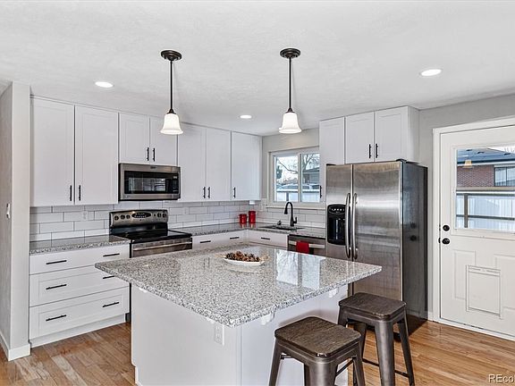 Welcome to this gorgeous remodeled ranch home with its expansive open floor plan. Prepare to be wowed as you step into this amazing home where thought and consideration have been put into every aspect of the remodeling process. The truly gorgeous open-concept kitchen has slab granite, new 42 inch cabinets, stainless steel appliances, and a trendy farm sink. It is a chef's paradise with abundant counter space and a huge kitchen island which features additional drawers and cabinets and is highlighted by stylish pendant lights. You can enjoy breakfast at the breakfast bar, savor an elegant meal in the dining room, or relax in your spacious and bright living room with its log fireplace. On the main floor you will find the master bedroom with a walk in closet and tastefully remodeled 3/4 bathroom. There are also 2 additional bedrooms and a full bathroom with jetted tub on the main floor. The finished full-basement has an expansive family room, 2 spacious, non-conforming bedrooms, a beautifully remodeled 3/4 bathroom with tile shower, as well as a laundry area, a workshop, and an additional storage areas. This home has new double-pane windows, wood floors, new carpet, new lighting, new doors - really too many updates to list. The attached 2-car garage is slightly oversized and has a workbench that stays with the home and a newer garage door. You can step out your back door into your private, fully fenced yard, complete with storage shed, xeriscape astroturf lawn, and full-sized RV pad complete with 50 amp service and double-wide gate access. This home is nestled in a cul-de-sac and is conveniently located close to I-225 and is within walking distance to Village Green Park. You won't want to miss this amazing home!