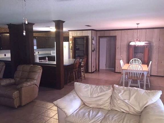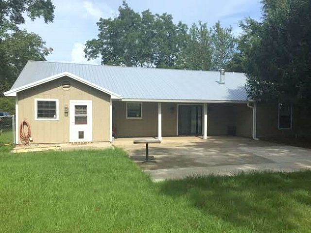 Country living, large lot, but convenient location. New metal roof, some new flooring, new paint, new interior doors. Move-in ready. Large lot with a huge backyard concrete patio. Very private location. Split floor plan, with large bedrooms. The living area is very open, and the living room is PARTY SIZED. The laundry room is as large as a bedroom with another access door to the back yard. This is reasonably priced for the buyer wanting a comfortable home and some space.