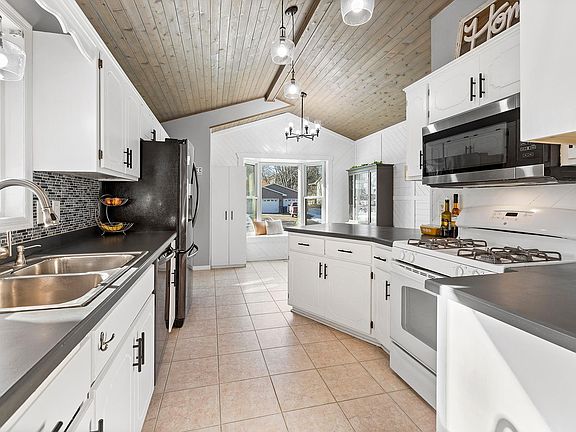 The home boasts nicely updated bathrooms, fresh paint, new carpet, and stylish light fixtures. Additional updates include a new dryer, sump pump, a water heater (2021), and vinyl siding (2022). The heated 3-car garage offers ample space for vehicles and storage, while the outdoor shed adds extra convenience.