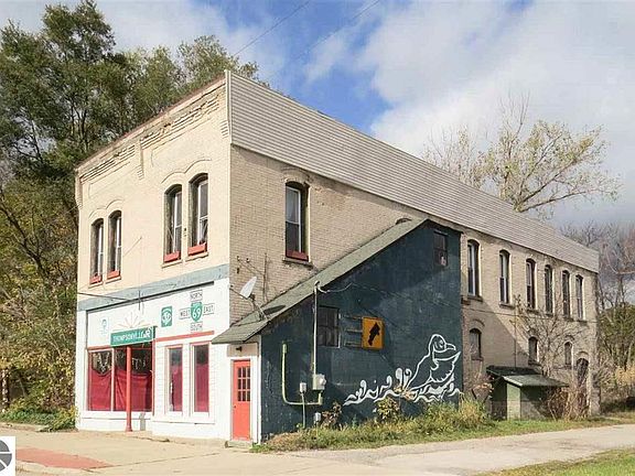 Bring your destination business to this historic early 20th Century building and call the upstairs living quarters home. 3 bedrooms and two baths upstairs, as well as the kitchen and living room area, makes the upstairs living quarters very roomy. There is a definite "step back in time" feel to this commercial building originally built in 1902. Currently the owners have put a kitchen and living room area downstairs so the building could be a rental as well, two possibly three apartments. Very close to Crystal Mountain, snowmobile trails, Iron Fish Distillery, the Betsie River for both fishing and kayaking.