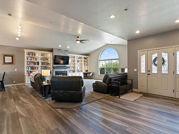 Custom built home on a quiet culdesac with no thru-traffic. This beautiful newly renovated home sits on 2 acres & is perfectly set up for your family! The open spacious ranch plan features a massive great room with a fireplace & stunning custom built-in bookshelves. The kitchen is perfect for family dinners & entertaining guests with a huge island bar that seats six, breakfast nook, & butler pantry! Kitchen has double ovens, stunning new quartz counter tops & a gas cook top on the main island. The extensive renovations also include new floors on the entire main floor, custom bathroom vanities, resurfaced fireplace, fresh paint, & more! The basement features a large bedroom/bath & huge living/rec room. Attached, oversized, 3 car garage has hot & cold water. Covered patio has stamped concrete w/ gas line for BBQ & a lovely view of the mountains! Outbuilding is 40'x48', has two extra-large doors, concrete floors & 4 horse stalls with automatic watering. MUST SEE!!