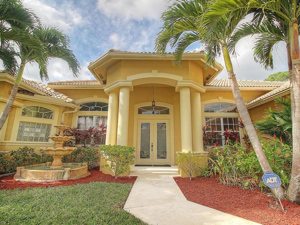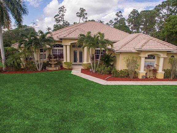 Beautiful 4 bedrooms, plus den/office, 3.5 bathroom home, on 1 acre. Screened-in heated pool with spa and waterfall; large covered patio. Gourmet kitchen, top of the line stainless steel appliances, including 48" side-by-side refrigerator, double oven; 6x6 ft island; granite counter tops, wood cabinets, oversized pantry. Separate wet bar area with its own wine cooler. Luxury master bath with marble counter tops, double open shower, freestanding tub. Utility/laundry room with sink. Crown moldings and tray ceilings. Formal dining room with 9 ft columns. Tile floors throughout. No HOA. Reverse osmosis water filtration system. Beautiful lush landscaping with tropical pond, privacy hedges, fountain. Rare opportunity to buy in Paddock Park.