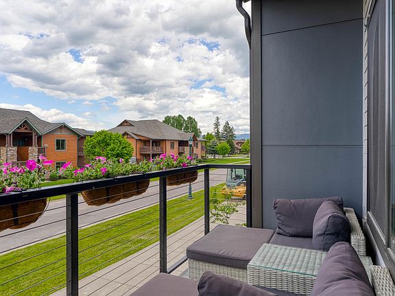This Whitefish Mountain Contemporary townhome is located in the new Alta Views community that provides excellent accommodations and amenities for a long-term (30-day minimum) stay. It is just two miles from downtown Whitefish, close to walking/biking trails and the Whitefish River. This three-level townhome offers 1,351 square feet with two bedrooms, a loft, and two bathrooms to accommodate up to four guests. You will enter the home from the garage and go up a flight of stairs to the main level great room holding the living room, kitchen and dining area accentuated by the vaulted ceiling. Living Room: This room features offers comfortable leather furnishings and a 55" Smart TV/DVD player and Apple TV. This space offers lots of natural light and mountain views, plus access to the balcony. Kitchen: The kitchen is well equipped and provides stainless appliances, including an electric range with convection oven. The center island is a great space for meal prep or entertaining and offers bar seating for three. Dining area: Features a table with seating for four. Loft: Offers a desk and sitting area perfect for getting some work done. Bedrooms/Bathrooms Master Bedroom (lower level) Queen size bed, and the private bathroom has a large shower. Bedroom 2 (main level) Full size bed, views and access to the shared full bathroom with a tub/shower combo (on the main level). Community amenities Alta Views community amenities include a clubhouse with a pool table and sitting areas, a fitness center, plus two hot tubs. Hot tub: Yes, communal Internet Access: High-speed Wi-Fi Laundry: Yes, washer and dryer in the home Parking: Two-car garage (no driveway parking allowed) Air conditioning: Yes, central Pets: Allowed. One dog max - no puppies. May consider a 2nd dog with owner prior approval. $150 non-refundable pet fee. Please contact our Property Specialists if you would like to travel with a second dog, or if you have questions. Security cameras: No BBQ: None 30-DAY MIN RENTAL Distances: Reservoir Trailhead 4.4 miles Big Mountain Trailhead 7.8 miles Whitefish Mountain Resort 9.1 miles Whitefish City Beach 3.2 miles Whitefish Lake - 5.4 miles Glacier National Park 24.4 miles CDC cleanings are performed using checklists following all CDC cleaning guidelines. 30-day min rental. All utilities included. Smart TV in the living room. One dog max allowed - no puppies please (with $150 non-ref pet fee). No smoking. 2-car garage.