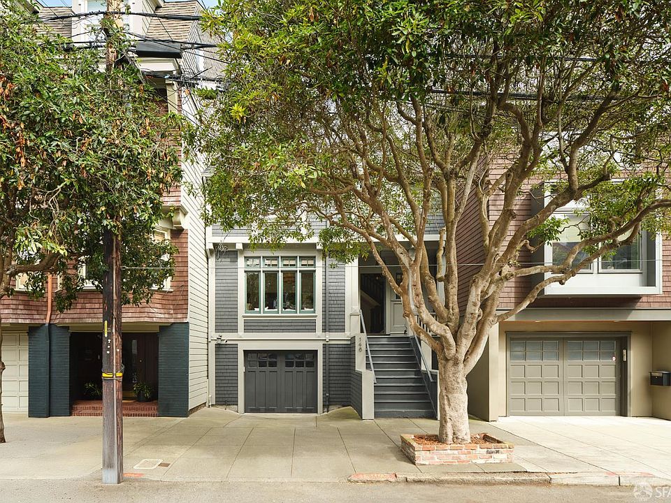 This enchanting four-bedroom shingled home has been painstakingly maintained and updated to offer a unique combination of period charm and contemporary amenities and comforts. The main level features a light-filled formal living room with a fireplace, a chic formal dining room with a coffered ceiling, and a bright, open family room and kitchen with a Wolf range, an island with counter seating, a sunny breakfast area, and French doors opening to a deck overlooking the backyard. Four peaceful bedrooms are secluded one level above. The sophisticated principal suite features a bay window seat, two walk-in closets, and an en-suite bath with eye-catching marble surfaces, a shower, and a soaking tub. The three guest bedrooms, each with a distinct palette and ambience, share a hall bath. An office, sitting room, or lounge on the uppermost level is adjoined by two ample closets. The home's lower level is dedicated to a spacious garage, a stylish bath, and an inviting family room opening to a patio and the gardens beyond. Accessible from two levels, the backyard is an oasis of flourishing trees and greenery that provide delightful color and coveted privacy. Located along the Lake St corridor near the Presidio and the restaurants, shops, and famed weekend farmers market of Clement St.