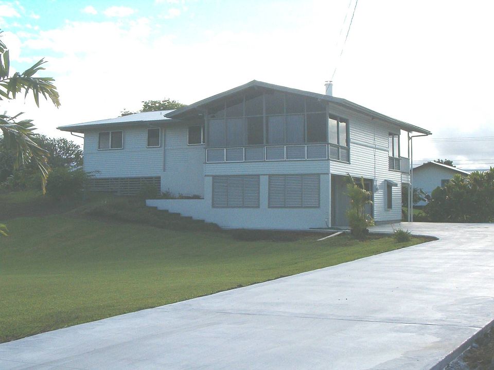 Well kept 3br/2ba home in Waiakea area. Redwood construction, hard wood floors, fireplace, deck, built-in storage. Additional rm/ba and 2 car garage on lower level. Large front yard and concrete driveway with space for extra parking. Includes solar, range, refrigerator, washer, dryer, and yard service. View of Puna coast line and of Mauna Kea and Mauna Loa Mountains. Waiakea Schools and Hilo Municipal Golf Course nearby.