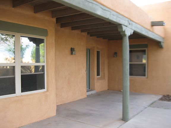 This is a beautiful house in Corrales, located away from traffic and in a wonderful neighborhood. It has the following rooms: 2 children bedrooms 1 full bathroom for the children and guests 1 Master bedroom 1 Master bathroom with a toilette room and big bath tube and shower 1 Office room connected to the master bedroom 1 Office/bedroom a big open living area consisting of: kitchen, dining area, breakfast nook area, and living room with gas/firewood fireplace The yard is separated into four areas: 1. Parking area 2. back yard nature 3. back yard maintained with a terrace area 4. inner courtyard area with a front porch with a spectacular view of the mountains and a back porch typically used as an eating area The property is fully fenced on the outside. The heating system is a mini-split system allowing different temperatures in different rooms, and it is used to heat and cool (AC). Please go to the turbotenant webpage and search for the house. You will find many pictures and can apply, too. 1 year lease minimum, rent and tenant pays all utilities.
