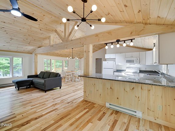OFFERS DUE BY 5/29. Second tier with seasonal lake views of Panther Lake. This two bedroom, two bathroom ranch has been completely renovated featuring hardwood flooring throughout, granite countertops, open concept, tongue and groove accents giving this lake house a twist of modern and rustic. There's plenty of space outdoors whether you're sitting on the expansive covered front porch watching the wildlife, barbequing on the back deck or sitting around the campfire unwinding from the week. Everything has been taken care of and is ready for you to move in!, Eating Area: Modern KT