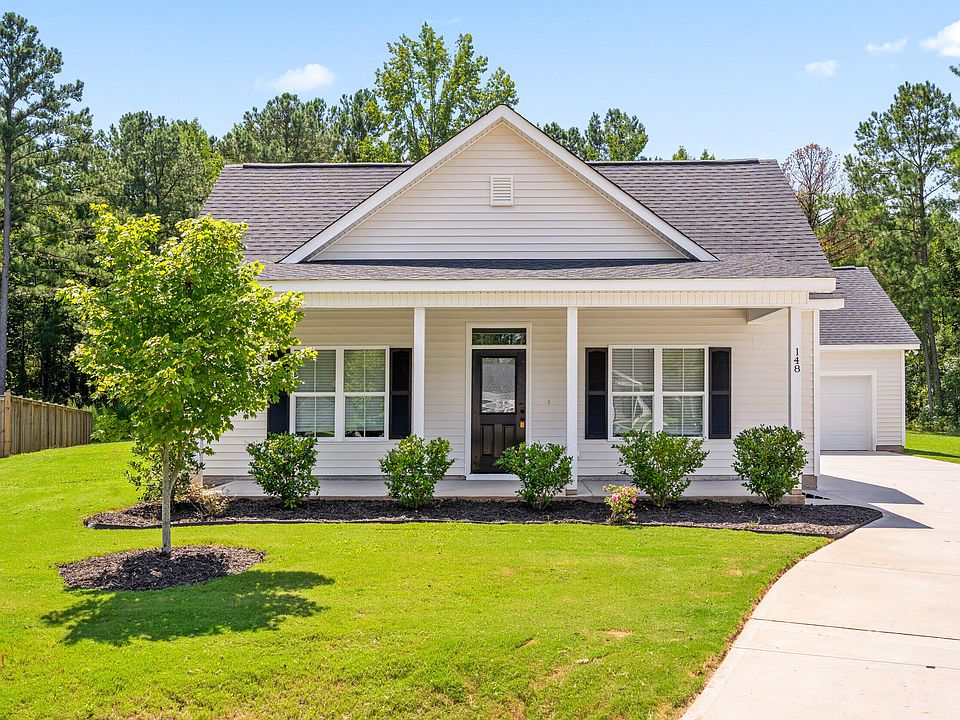Beautiful 3 bed, 2 bath home 2.4 miles from Harris Teeter & Publix in Flowers Plantation area! Welcome Home!! Covered front porch, open floor plan, engineered hardwoods in the den and kitchen. Kitchen has beautiful cabinetry, lots of countertop space and a large kitchen island, all with stainless appliances. Primary suite has a large walk-in shower, over-sized walk-in closet. Laundry room has stackable washer/dryer and extra shelving. And a patio in the back backyard.