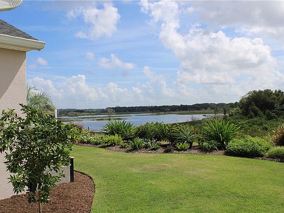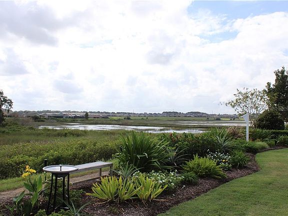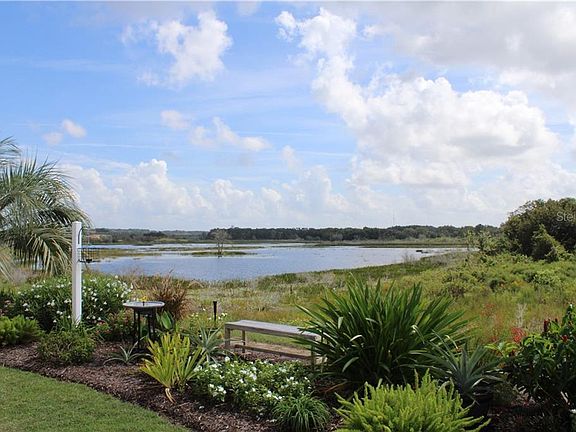 BREATHTAKING WATER VIEW! This beautiful upgraded Shea Solar Heather Floor Plan in Trilogy Orlando is a MUST SEE! The home features wood and tile floors throughout; gorgeous kitchen with abundant granite countertops, stainless steel appliances, and a WOLF induction range; 2 bedrooms, 2 full baths, den and laundry/smart space with additional cabinets and 2 built in desks. The lanai has Phantom Screens allowing you to enjoy the open air or full screen. This home has Shea Xero Solar, double pane Low E windows, and radiant barrier, making it very energy efficient. Trilogy Orlando is a guard gated community boasting the 57,000 square foot Magnolia House that offers resort style indoor/outdoor pool, event center, tennis and pickle ball courts, bocce ball, restaurant and bar, demonstration kitchen, craft room, and state of the art fitness room. HOA includes lawn/shrub maintenance,, basic cable, internet, home monitoring, street lights, and guard gated entrance. Don't miss out on this beautiful home in Trilogy Orlando! This property may be under audio/video surveilance.