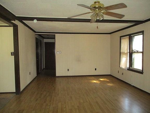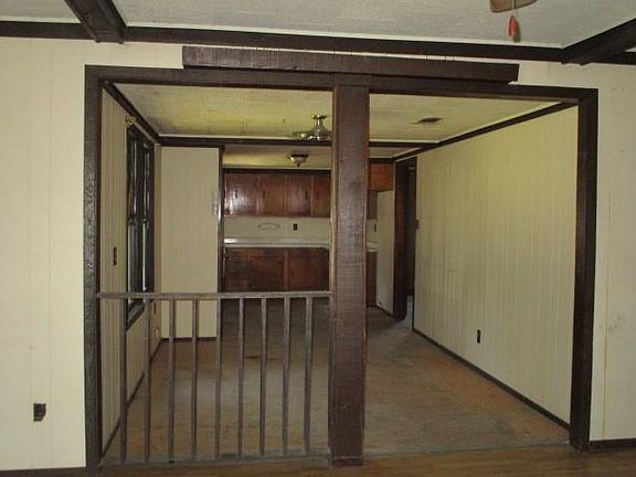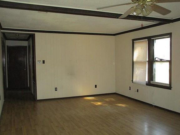 This raised home sits on 2.5 city lots, large yard with a slab in back yard (around 20 x 30) that could be workshop, carport, garage etc. Interior has fireplace with insert, good sized screened in porch off living room, 1 bath with tub, 2nd bathroom has large shower. The kitchen/dining area is open. This house has lots of possibilities.