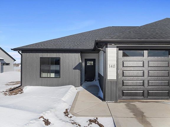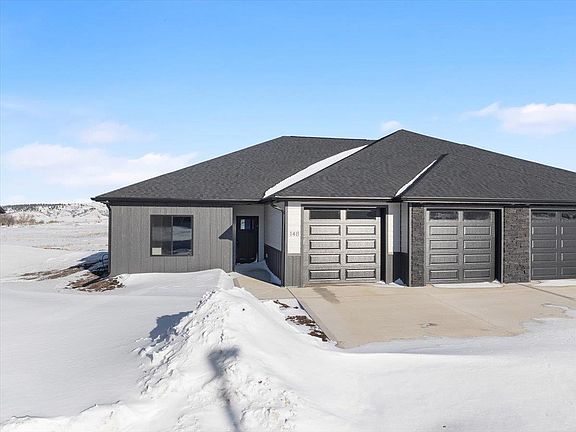 For more information, please contact listing agents Zachary Zandstra 605-484-3266 or Heath Gran 605-209-2052 with Great Peaks Realty. Brand new townhome construction completed in the Peaceful Pines subdivision that now includes full landscaping (sod, rock, edging, irrigation, etc.)! This affordable, yet luxurious one-level zero-entry townhome is 1,765 SQFT and offers 3 beds & 2 baths. The master suite includes a walk-in shower, walk-in closet, & double sink vanity. Large windows throughout the entire property provide ample natural light. The kitchen comes equipped with custom cabinets, solid surface countertops, and a large island. LVT flooring in the kitchen, dining room, & living room. The living room also has a trayed ceiling & leads to an exclusive covered back patio. The garage comes completely finished & insulated with a floor drain and water spigot. Right off the garage, you'll find an adequately sized mudroom that features washer/dryer hookups, laundry cabinets, & crawl space access. With a hipped roof style, this unit's exterior is absolutely stunning! Located just minutes from Elkhorn Ridge Golf Club & Resort, this property has easy access to both Highway 85 & Interstate 90. You're also just a few miles from shopping, restaurants, & downtown Spearfish. Call us today if you're interested and want more information or schedule a showing! SELLER IS NOW OFFERING 15K IN CREDIT TO BUYER(S) @CLOSING, PLUS AN ADDITIONAL APPLIANCE CREDIT!