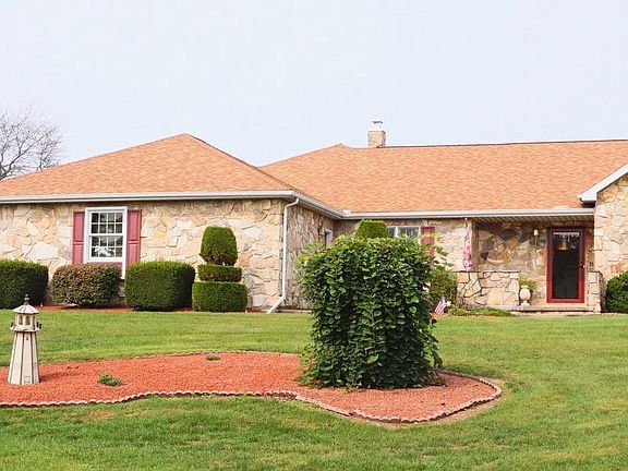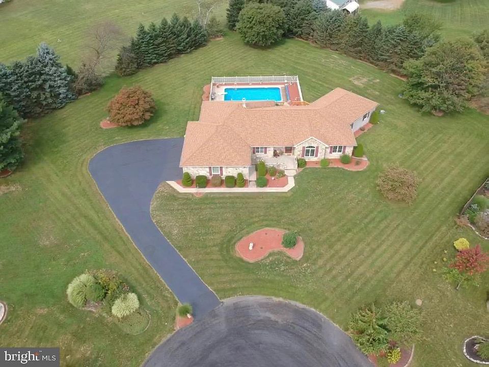 Well Maintained & Updated Ranch home Featuring a corner lot at the end of a cul-de-sac with inground pool and geothermal. Over an acre of ground with paved drive and true stonework. Through the new front door you get a spectacular tile main entrance with Formal living room to the side then a open concept kitchen living room & dinning room combo. To the left 2 bedrooms and an office on the one side of the home including master suite and large walk-in closet with full bath and jacuzzi tub. The right side of the home has 2 bedrooms and a jack & Jill full bath. Garage features 3 bays with the 3rd being oversized. Yes! The pool is open to see and in great condition. Deck Features a Sun Setter retractable onning. Geothermal heat for more efficiency.