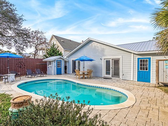 Welcome to this meticulously maintained Florida cottage with over 1,100 square feet of thoughtfully designed living space all on one level, a move in ready retreat with everything you need to enjoy the 30A lifestyle. It has it all: beautiful landscaping with palm trees, a large private pool, screened in porch and just a few blocks from the beach. An oversized lot features plenty of parking, no HOA and 50amp hookup for Class A RV's. Attached carport that can be easily turned into Third Bedroom or two car garage. Recent updates include 2018 metal roof, 2020 water heater and 2020 Generac generator that will power the entire house. Impressive rental projections make this a compelling turn-key investment opportunity, perfect second home or a primary residence.