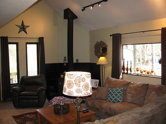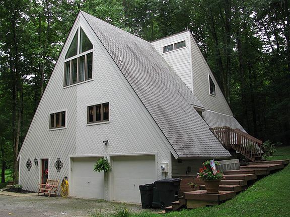 Awesome contemporary home with acreage surrounded by trees and located close to Elizabethtown City limits and Fort Knox. Quick and easy access to Interstate 65, Joe Prather Highway (313), and Battle Training Road (434). Main level features an open Great Room with a huge vaulted ceiling, track lighting, wood-burning fireplace and half-bathroom. Overlooking the Great Room resides a cozy office/library with built-in shelving. Large, open kitchen/dining area is located off Great Room and features a formal dining room and eat-in-kitchen with can lighting and hardwood flooring. A balcony runs off the spacious formal dining room. Kitchen comes with refrigerator, double built-in oven, smooth countertop stove, dishwasher, microwave, and disposal. The master bedroom/bathroom located on upper level features a vaulted ceiling, its own independent heat pump/central air system with thermostat, track lighting, walk-in closets, and tiled shower with dual shower heads. The Finished Walkout Basement features bedrooms/family room, utility room with multiple cabinets, full bathroom, can and track lighting, and an attached, two-car garage. Moreover, transferrable warranty with new windows.