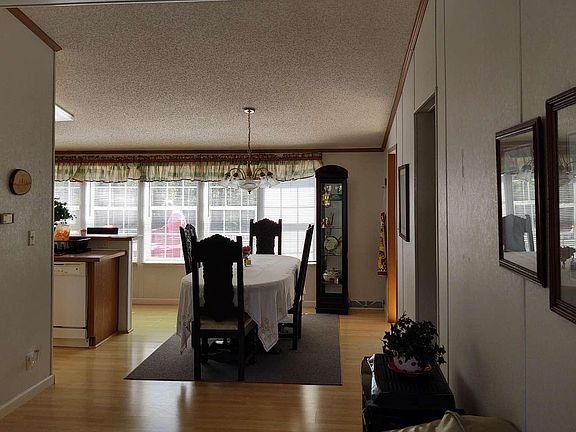 Beautifully maintained manufactured home with one-car garage and concrete driveway. Three bedrooms, sitting room, 2 full baths, living room/dining room combo. Laundry room off kitchen. New roof in 2019. Vaulted ceilings and gas fireplace/stove in living room. Lots of windows. Light and bright with nice mountain views. New decking. Located in a very private and quite neighborhood.