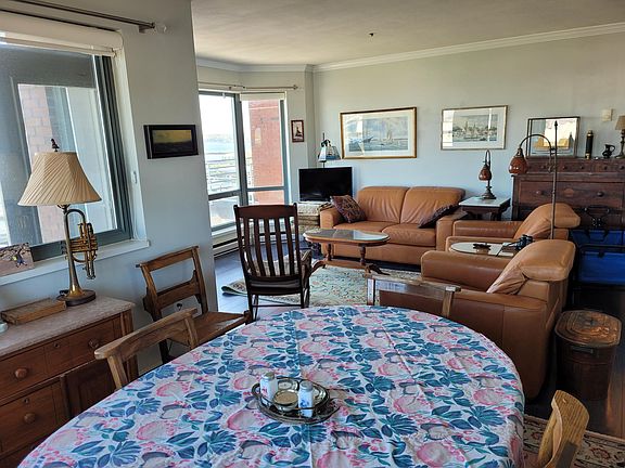 This two-bed/one-bath penthouse at Breakwater in South Portland has been immaculately updated and remodeled. The kitchen has high-end granite, stainless-steel appliances, bar seating for 2, and a custom backsplash, there is new flooring throughout, a separate dining room, a step-in shower, large windows, and a private balcony which looks out on Casco Bay and Fort Gorges. The ocean view will blow you away!! $2,700/month includes hot water. One-year lease required. Sorry, no smokers, no pets. Breakwater is located near Bug Light Park and the Greenbelt. There is 24/7 security on site, a modern laundry facility in the building, bicycle storage, plenty of off-street parking, and a community garden for those with a green thumb. Call Mike at the number shown for more information. Owner pays hot water. $40 application fee, $100 move-in fee.