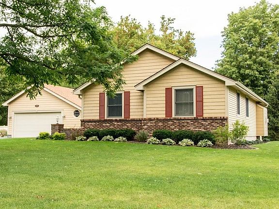 This pristine, L-shaped custom ranch has been well-cared for & has manicured yard & many updates! Maple kitchen w/ cherry hardwood flooring; first floor laundry; gas fireplace in living area w/ slider from dining area to Trex deck. Master bath has double fiberglass shower w/ seat & vanity. Main bath w/ceramic tile shower & floor off hallway. Enormous basement has roughed-in plumbing for another bath & an enclosed work shop. 2-car garage w/ opener. Attractive shed addition. Double-wide, black top driveway-2007; paver sidewalks; vinyl shake siding-2007; roof- 2002; furnace & a/c-2002. Super private backyard!