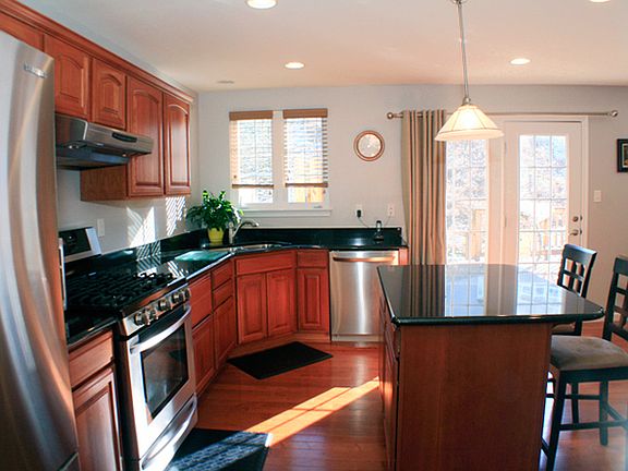 This is a splendid, large 3 bedroom, 3 bath, 2 car garage luxurious townhouse on a tree-lined street with sidewalks and a great neighborhood, Kaufman Run. Only 2 years old, this ENERGY STAR certified townhouse is enlarged with a 4 feet extension added to the basement, first and second floor. It has a fabulous open first floor plan with a spacious and bright family room, large kitchen, upgraded cherry cabinets, granite counter-tops, hardwood flooring, and stainless steel appliances. The second story features two bedrooms and a spacious master bedroom suite, all with cathedral ceilings and recessed ceiling lights. With a huge backyard deck you can host summer parties and get the grill going, while the in-wall and in-ceiling surround sound system from the living room will make a perfect entertainment oasis for you and your family. A beautiful large finished basement with recessed lights, built-in satellite/cable/internet/phone makes for a perfect game room, home office or an entertainment room. Recessed ceiling lights throughout entire house, and granite counter-tops in all the bathrooms, add to the stylish appeal of this pristine, like-new property. In a great location, close to Route 228 near shopping, great schools, dining and major roadways to downtown, this townhouse has always been well cared, smoke free and pet free.