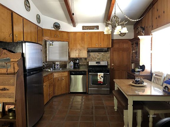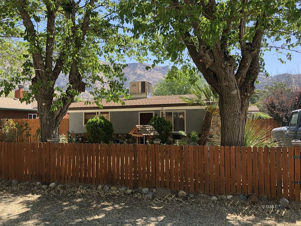 This a darling home located in Kernville has 832 sq. feet of nothing but charm, (fully furnished). Living room has a wood burning stove insert and all knotty pine walls, vaulted ceilings with wood beams, Kitchen has plenty of storage, fridge, dishwasher and stove, Has back door for easy access to your back yard and garage area. Has 1 full bathroom. Bedrooms are just lovely, with plenty of closet space. There is a shed out in the back area for more storage if needed. Fully fenced back yard and partially fenced front yard with driveway and double gates to the back.
