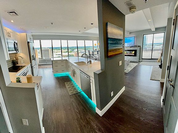 This home is the corner unit of the Plaza Towers (facing North/Northwest) that has been completely renovated and redesigned and comes furnished (with some flexibility, depending on renter's preference). Home features a 1,400 sqft patio. This is the first time this condo has been offered for rent after the complete remodel and redesign. Plaza Towers has many amenities including a pool, hot tub, steam room and exercise rooms. It is the only residential building in Grand Rapids that is directly connected to the “Skywalk”, giving its residents access to multiple restaurants, 3 hotels (The Courtyard Marriott, JW Marriott, and Amway Grand) and the Van Andel Arena. These establishments are all available without having to travel outside.