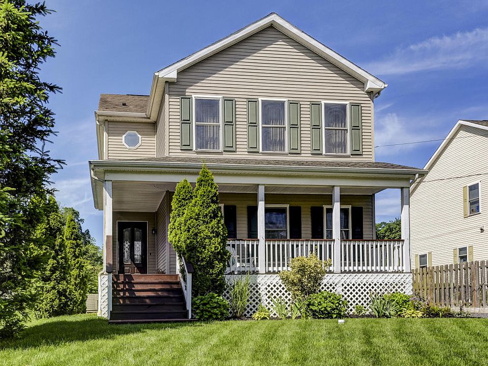 BEAUTIFUL AND BRIGHT! Nestled idyllically into a quaint and blissful neighborhood, this 4 bedroom, 2.5 bath shore colonial awaits its new family. Decorated in neutral tones of gray and white with gleaming hardwood floors and oversized windows that let in an abundance of sunlight, this home has an uplifting aura about it. The beautiful eat-in-kitchen with SS appliances and granite counters opens to the dining and family rooms and overlooks the spacious yard, the living room features a fabulous gas fireplace, the master bedroom is large and airy with an en suite bath and large walk-in-closet, and 3 more bedrooms complete the upstairs. Wonderful rocking chair front porch, large basement, an extra-long driveway, spacious attic, plenty of storage, and lovely perennials and landscaping.
