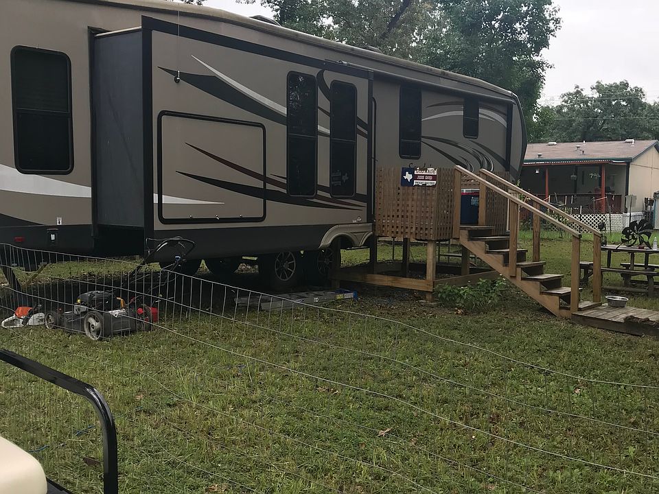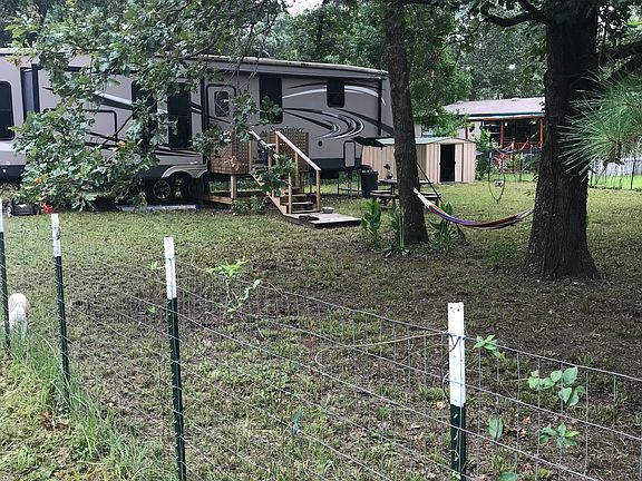 2016 43 ft sandpiper fifth wheel on 2 shaded lots 40 x 80 fenced.Fifth wheel has 2 yr warranty left. Island kitchen, remote control fireplace,built in vacuum cleaner, double sinks, washer dryer hookups and outdoor kitchen area with fridge sink and drop down tv. 3 slides outs. Still looks immaculate and everything works. Added porchand storage shed. Nice gated community in harbor point on lake Livingston. Great weekend getaway to relax and fish. Big enough to enjoy.