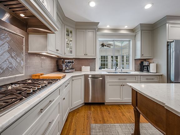 Perched high on a hill at the end of a cul-de-sac, this one-of-a-kind home offers both privacy and elegance. Step into a dramatic two-story foyer, where a sparkling glass chandelier welcomes you into an open, airy layout. The flow of the home makes it easy to move from room to room-or step outside to enjoy the professionally landscaped grounds and in-ground saltwater pool. With nearly two acres and mature trees set back from the house, the setting feels completely private. The sunny screened-in porch provides a perfect spot to relax for three seasons, with interchangeable panels of screens or windows, while skylights with automatic shades let you control the natural light. The renovated kitchen is a chef's delight, featuring a double convection electric wall oven, five-burner propane cooktop, refrigerator, dishwasher, quartz countertops, and a spacious eat-in area with custom built-in bookshelves. From there, you can gather in the inviting Great Room, centered around a propane fireplace that can easily be converted to wood-burning if desired. Conveniently located off the hallway to the roomy two-car garage are a large laundry room and a powder room. To the left of the entryway, you'll find the formal living and dining rooms. Upstairs, the primary suite is a true retreat, boasting a tray ceiling with fan, walk-in closet, and a newly renovated spa-like bath. Enjoy the walk-in shower with a rain option, a standalone soaking tub, double quartz vanities and a storage tower. Four additional bedrooms and another removated full bath complete the second floor. While the basement is unfinished, it offers ample storage and houses the brand-new water heater, a well-rite water pressure tank, 3M whole house water filtration system and a generator hook-up. All furniture inside and out ,except a few sentimental pieces, are also for sale.